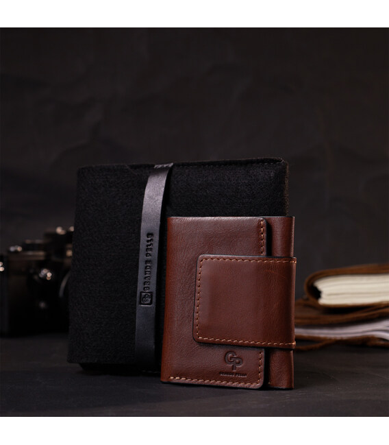 Описание Небольшой кошелек из натуральной кожи в три сложения GRANDE PELLE 11662 Коричневый