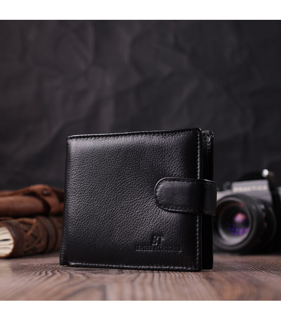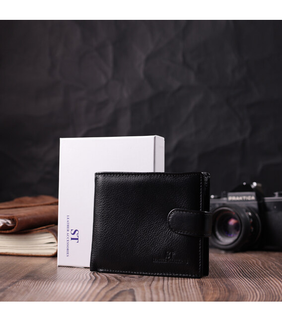 Описание Отменный горизонтальный бумажник для мужчин из натуральной кожи ST Leather 22465 Черный