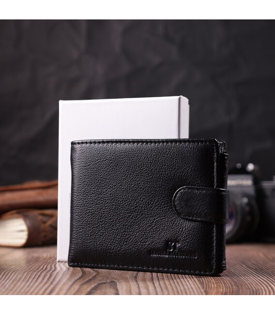 Многофункциональный бумажник для деловых мужчин которые ценят качество и практичность. Аксессуар вместительный из натуральной кожи, он состоит из двух вместительных отделений для купюр, двух карманов на молниях, четырех карманов под пленкой, которые находятся в одном блоке и закрываются хлястиком на кнопку, трех ячеек для карт, двух скрытых карманов и кармана для монет. Портмоне дополнено надежной фурнитурой и крепкой подкладкой. Упакован кошелек в фирменную картонную коробку белого цвета.