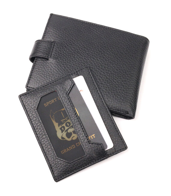 Описание Классический мужской кошелек из натуральной кожи KARYA 21066 Черный