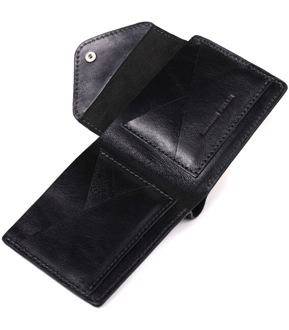 Красивое горизонтальное портмоне, которое изготовлено только из натуральной кожи высочайшего качества, без тканевой подкладки. Изделие выполнено в гладкой коже, которое красиво переливается на солнце. Фишкой этого кошелька является треугольный клапан сверху, на который закрывается аксессуар. Данное портмоне идеальный вариант для современного человека, который предпочитает носить минимум наличных и выбирает карточки. Портмоне упаковано в фирменную коробку. Данное портмоне станет лучшим подарком для ваших близких.