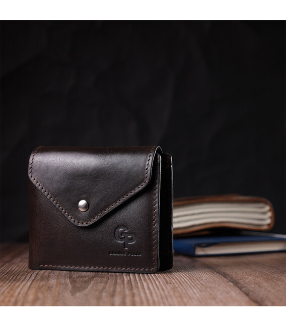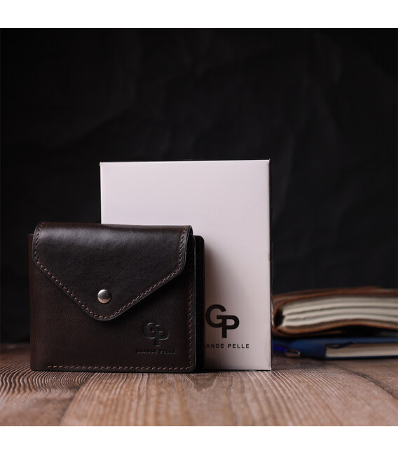 Описание Мужской кошелек из глянцевой натуральной кожи GRANDE PELLE 16807 Коричневый