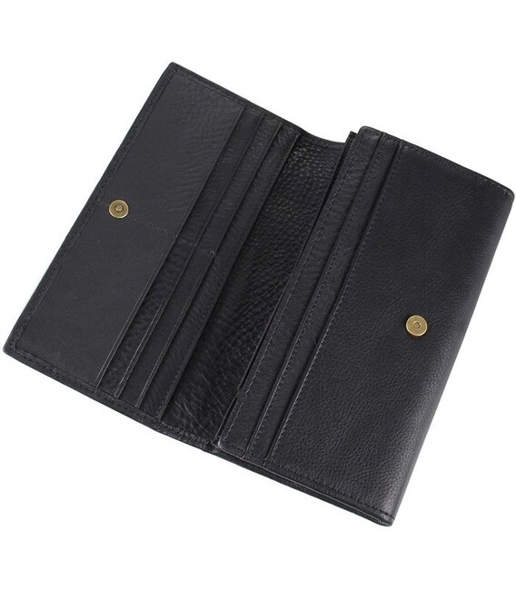 Великолепный кошелек черного цвета. Этот Аксессуар выполнен из натуральной кожи. Кошелек представлен в классическом стиле при этом его дизайн подчеркивает аристократичность обладателя данного кошелька. В кошельке много отделений для карточек и купюр. Кожа на ощупь мягкая, внутри карманы прошиты плотной тканью. Закрывается кошелек на магнитную кнопку. Упакован в текстильный пылезащитный чехол белого цвета.