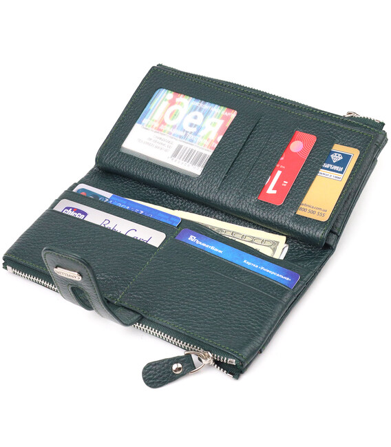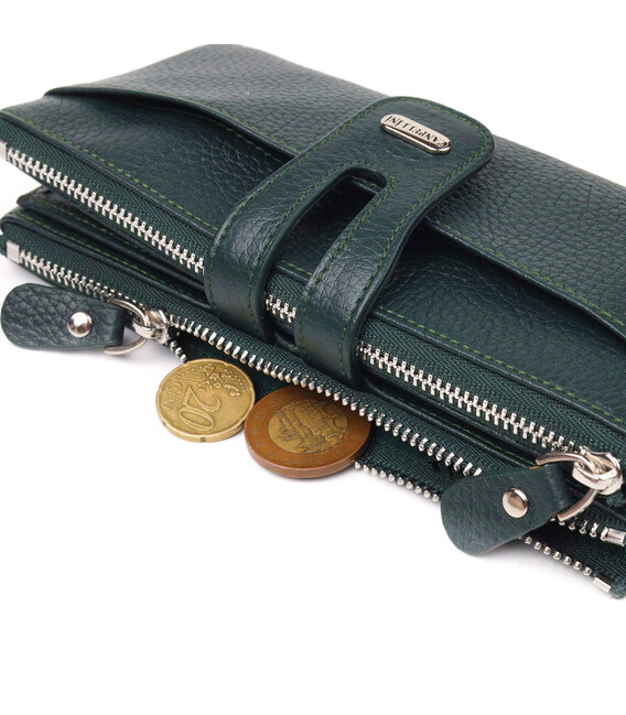 Описание Вместительный кошелек из натуральной зернистой кожи CANPELLINI 21633 Зеленый
