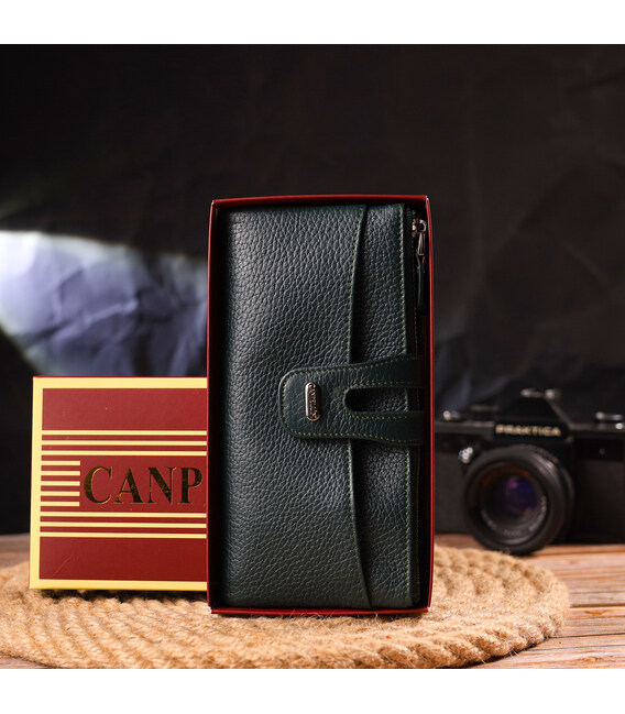 Вместительный кошелек из натуральной зернистой кожи CANPELLINI 21633 Зеленый