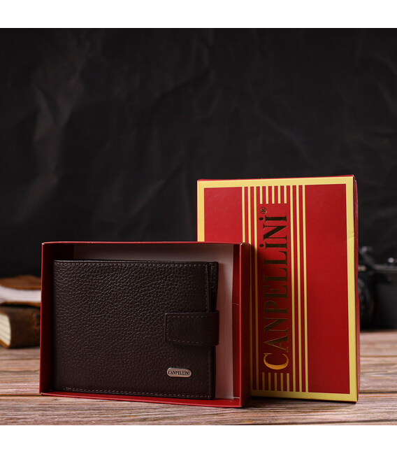 Описание Вместительный мужской кошелек из натуральной кожи флотар CANPELLINI 21944 Коричневый