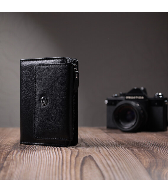 Описание Практичный кошелек с монетницей из натуральной кожи ST Leather 22740 Черный