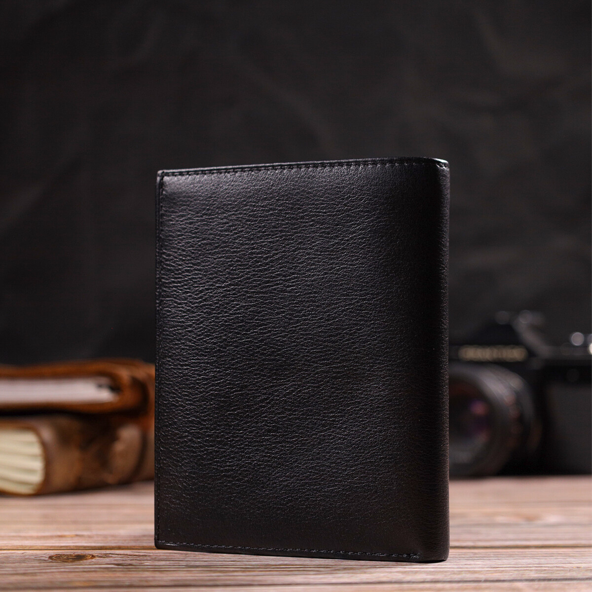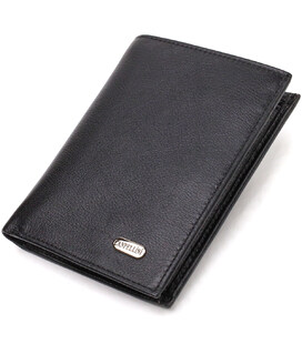 Универсальный мужской кошелек в классическом черном цвете, из натуральной кожи. Аксессуар имеет одно основное отделение с перегородкой, в которое помещаются купюры всех номиналов, шесть карманов для карточек, два кармана под сеточкой для документов, монетницу и один прилегающий карман. Закрывается аксессуар пополам без застежки. Упакован бумажник картонную коробку. Кожаный кошелек является отменным подарком для родных и близких людей.