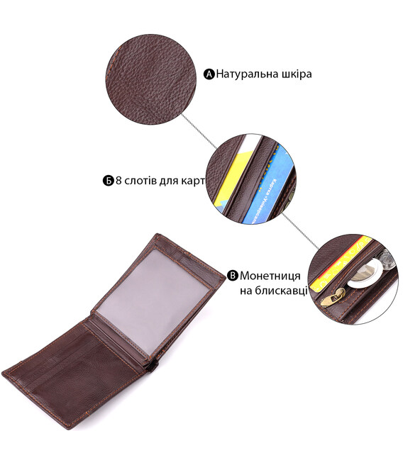 Описание Горизонтальный стильный кошелек из натуральной кожи Vintage 22888 Коричневый