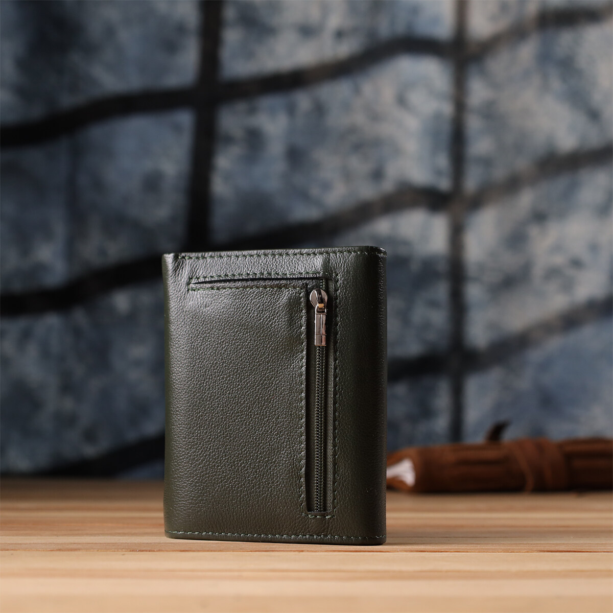 Аккуратный женский кошелёк в три сложения изготовлен из натуральной кожи высшего качества. Аксессуар удачно сочетает продуманную функциональность, элегантный внешний вид и высокую износостойкость, что делает его отличным выбором для повседневного использования. Внутреннее пространство организовано таким образом, чтобы все необходимые вещи всегда были под рукой. На лицевой стороне расположено аккуратное тиснение с логотипом бренда, подтверждающее оригинальность изделия и высокий уровень исполнения. Внутренняя отделка сочетает натуральную кожу с прочным текстилем, что придаёт изделию дополнительную прочность и эстетичность. Кошелёк дополнен надёжной фурнитурой и упакован в фирменную белую коробку. Идеальное сочетание стиля и практичности — как для себя, так и в качестве подарка.