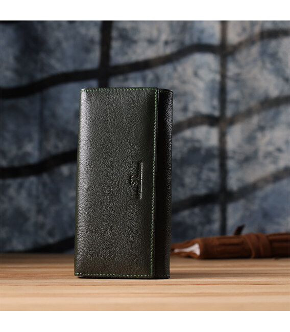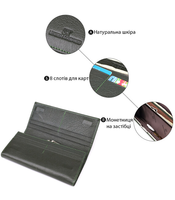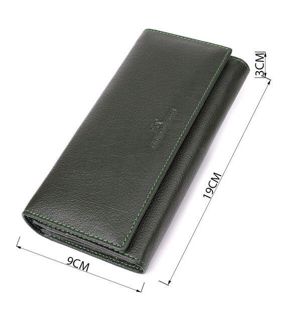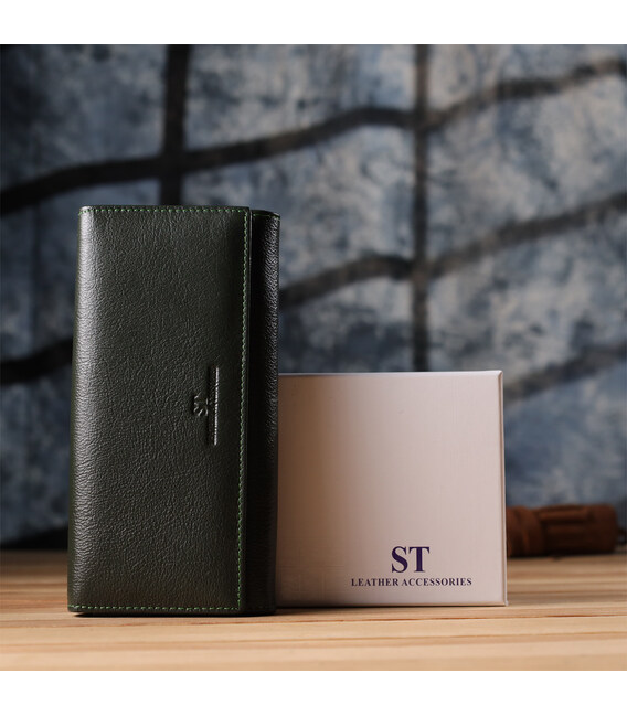 Описание Стильный кошелек у два сложения из натуральной кожи ST Leather 23066 Зеленый