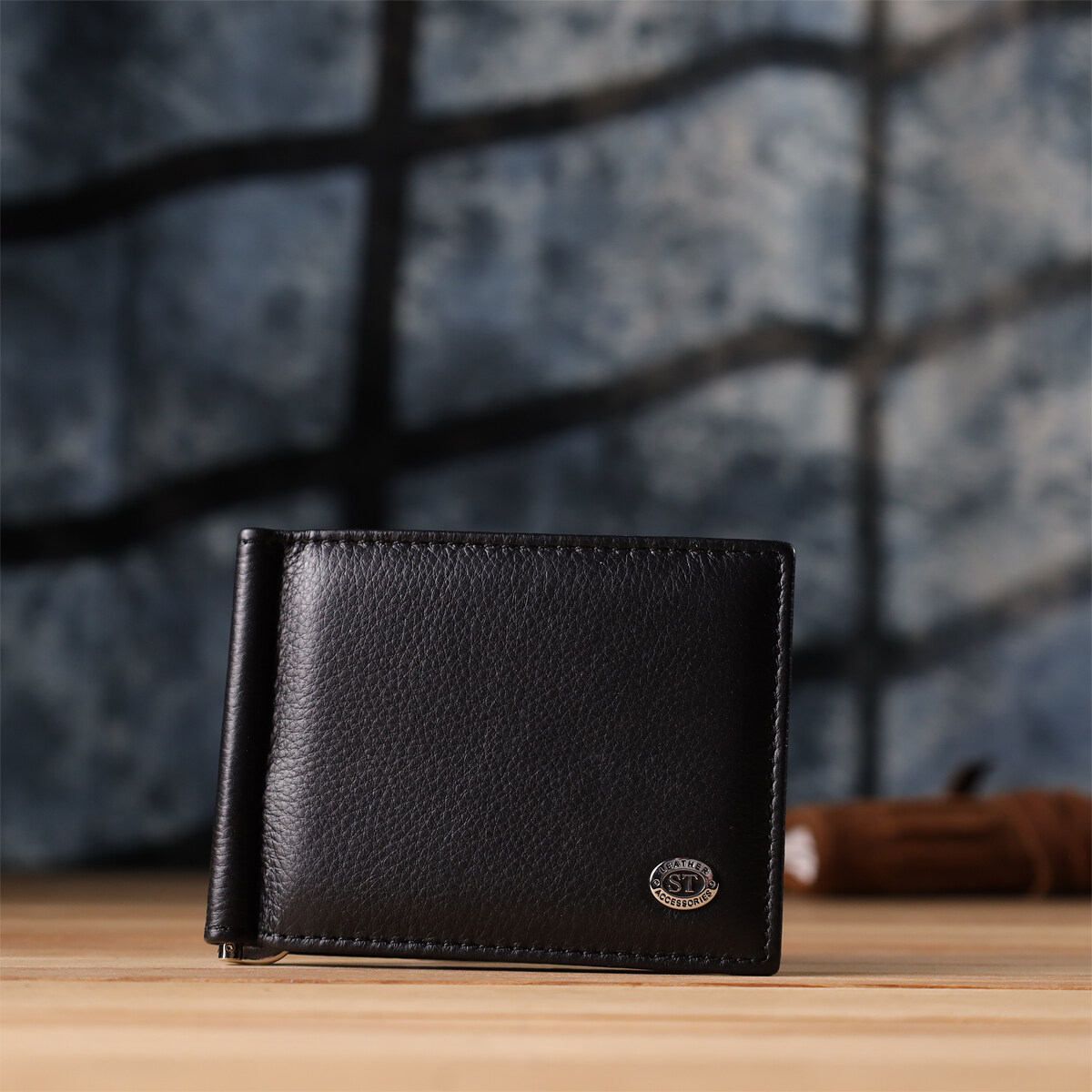 Элегантный и удобный бумажник с зажимом — отличный выбор для деловых мужчин, ценящих качество, функциональность и минимализм. Аксессуар выполнен из натуральной кожи с приятной фактурой и обладает хорошей вместительностью при компактных размерах. Бумажник оснащён прочной подкладкой и надежной фурнитурой, что обеспечивает долговечность и комфорт при ежедневном использовании. В нижнем правом углу лицевой стороны расположен аккуратный металлический логотип производителя — знак подлинности и высокого качества исполнения. Поставляется в фирменной картонной коробке белого цвета, что делает его отличным решением для подарка или стильным аксессуаром для себя.
