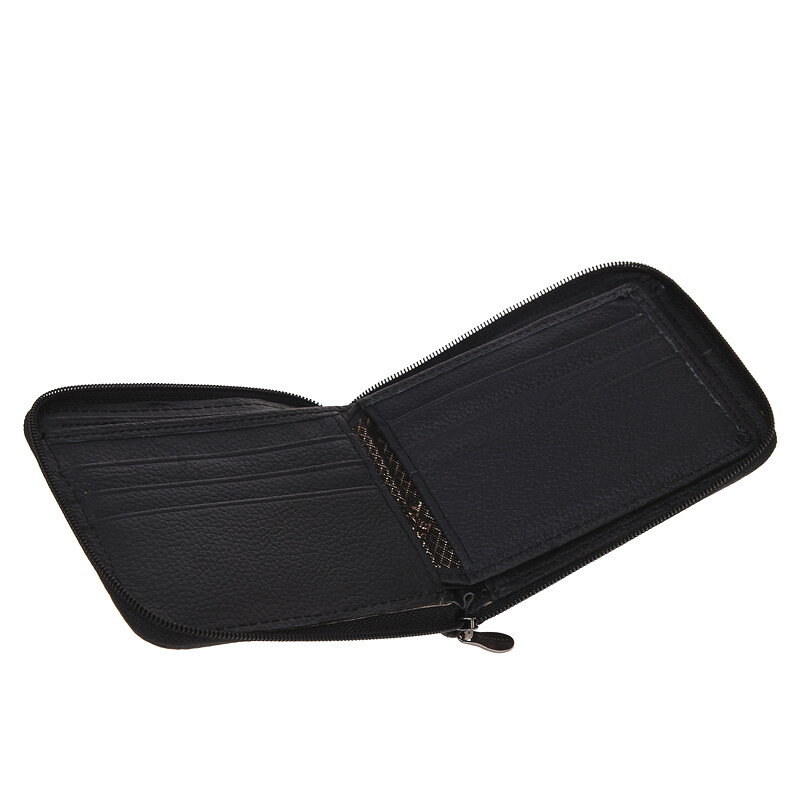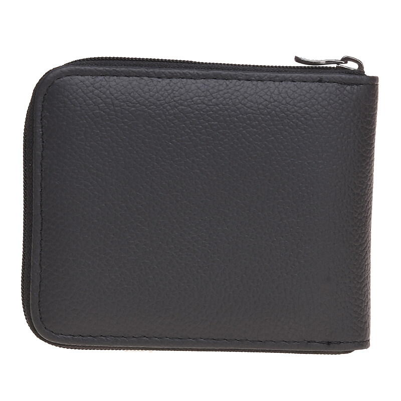 Кошелек закрывается на молнию. Имеет 2 отдела для купюр, 1 монетницу на молнии, 8 отделов под карты. Подкладка- текстиль.Цвет фурнитуры-серебро.