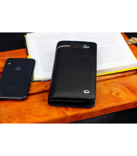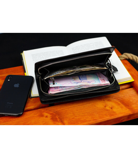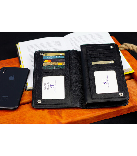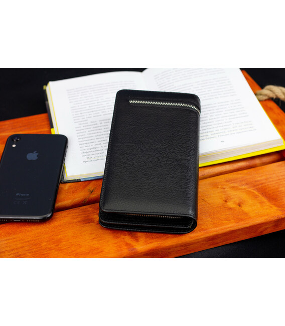 Описание Черный многофункциональный мужской кошелек из натуральной кожи МС291