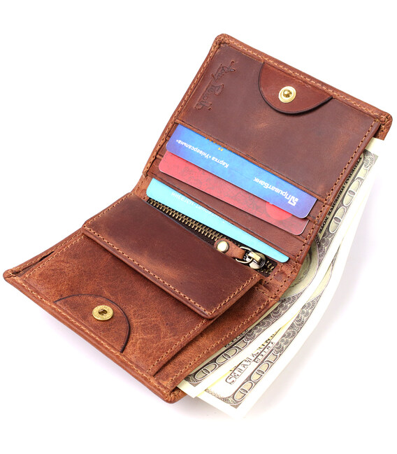 - удобная организация: одно отделение, четыре слота для карт, монетница на кнопке и вертикальный карман на молнии;
