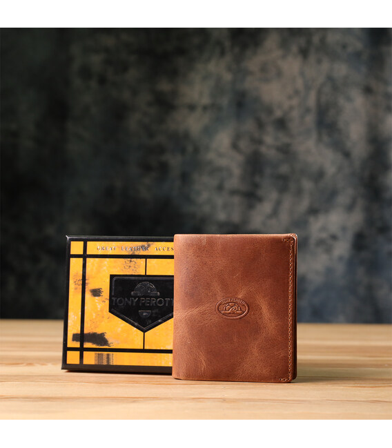 Практичный мужской кошелек Tony Perotti – стиль, который говорит за вас. Идеальный аксессуар для современного мужчины, ценящего качество и элегантность. Кошелек выполнен из матовой натуральной кожи премиального качества в стильном светло-коричневом цвете. Лаконичный дизайн с тисненым логотипом Tony Perotti в центре делает его универсальным и статусным. Такой кошелек становится не просто аксессуаром, а отражением характера: уверенность, вкус и внимание к деталям. Подходит как для ежедневного использования, так и в качестве подарка мужчине, который ценит настоящее качество.