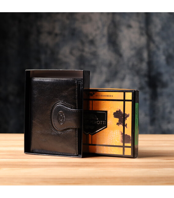 Кожаный кошелёк Tony Perotti — это сочетание элегантного дизайна, функциональности и безупречного качества. Изделие выполнено из натуральной кожи, приятной на ощупь и устойчивой к износу. Продуманное внутреннее наполнение позволяет удобно разместить купюры, карты, монеты, а также водительские права и документы на автомобиль. Лаконичный чёрный цвет делают кошелёк универсальным аксессуаром, который подчеркнёт стиль и статус своего владельца и станет достойным подарком.