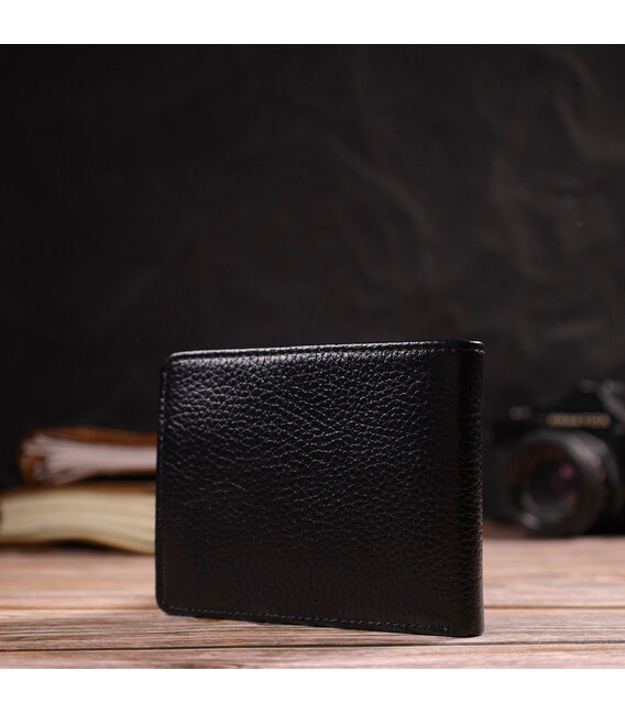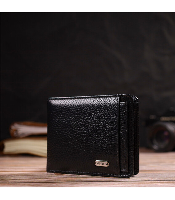 Описание Оригинальный компактный кошелек с вкладышем для удостоверения для мужчин из натуральной кожи флотар CANPELLINI 21875 Черный