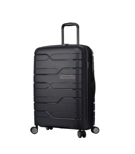• Чемодан оснащен телескопической ручкой с кнопкой регулировки высоты, также есть ручки на боковой и верхней поверхности, выполненные из пластика, для удобства переноски.