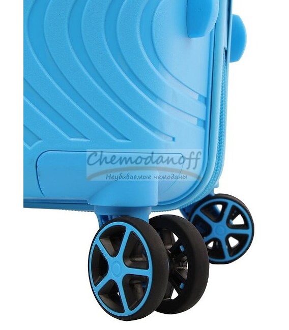 Бесшумное и плавное перемещение обеспечивают полиуретановые колеса на подшипниках, вращающиеся на 360 град, придавая чемоданам дополнительную манёвренность и давая возможность перемещать его в вертикальном положении.
