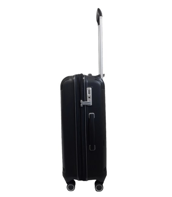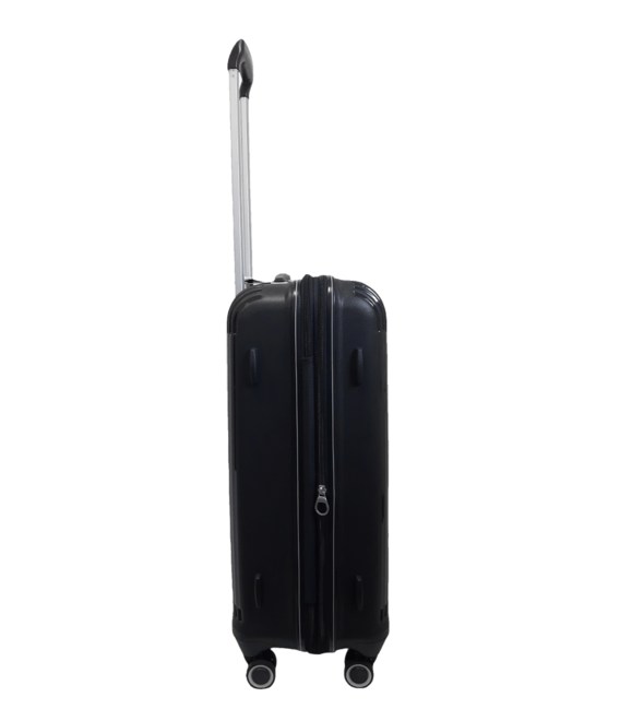 - Чемодан оснащен телескопической ручкой с кнопкой регулировки высоты, также есть ручки на боковой и верхней поверхности, выполненные из пластика, для удобства переноски.