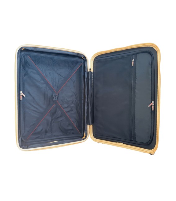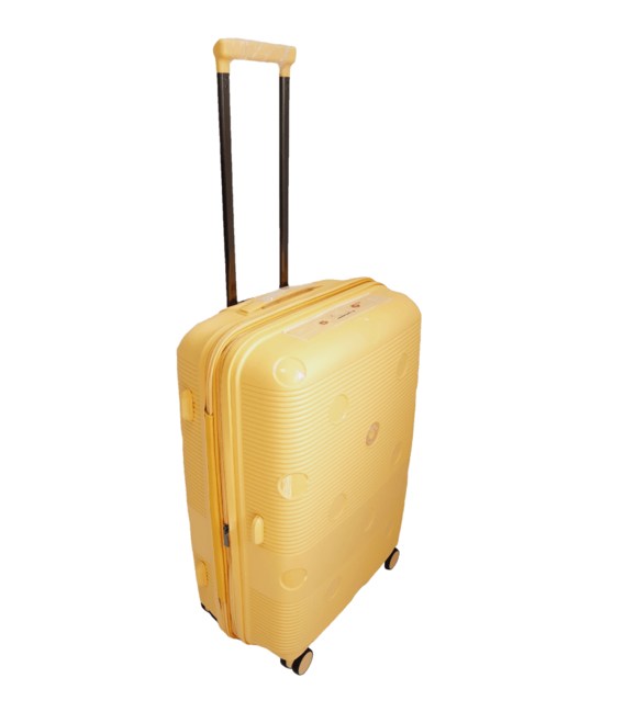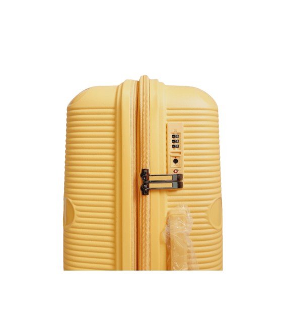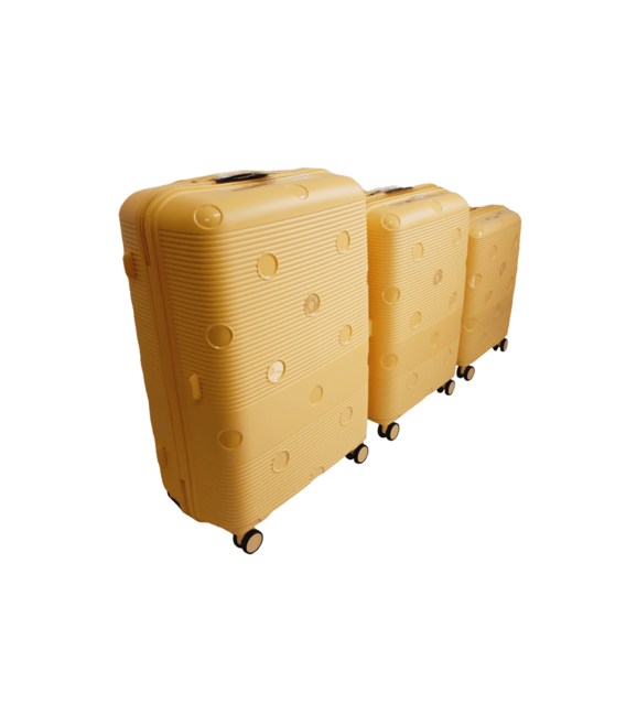 Комплект легких пластиковых 4-колесных чемоданов желтого цвета большого, среднего и малого размера Airtex Jupiter.