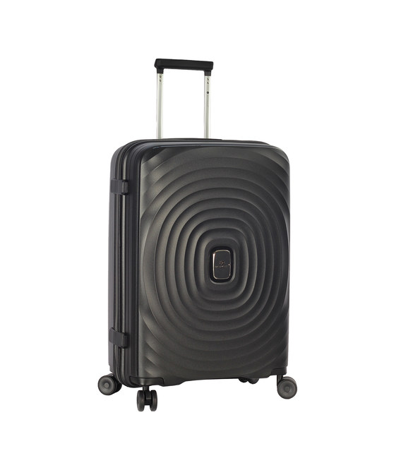 Бесшумное и плавное перемещение обеспечивают полиуретановые колеса на подшипниках, вращающиеся на 360 град, придавая чемоданам дополнительную манёвренность и давая возможность перемещать его в вертикальном положении.