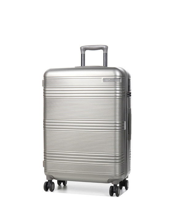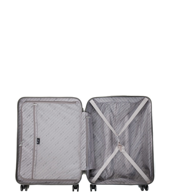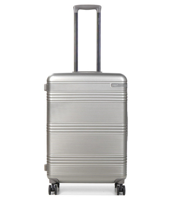 Шасси состоит из четырех двойных независимых вращающихся полиуретановых колес с подшипниками, так что чемодан может вращаться вокруг своей оси.