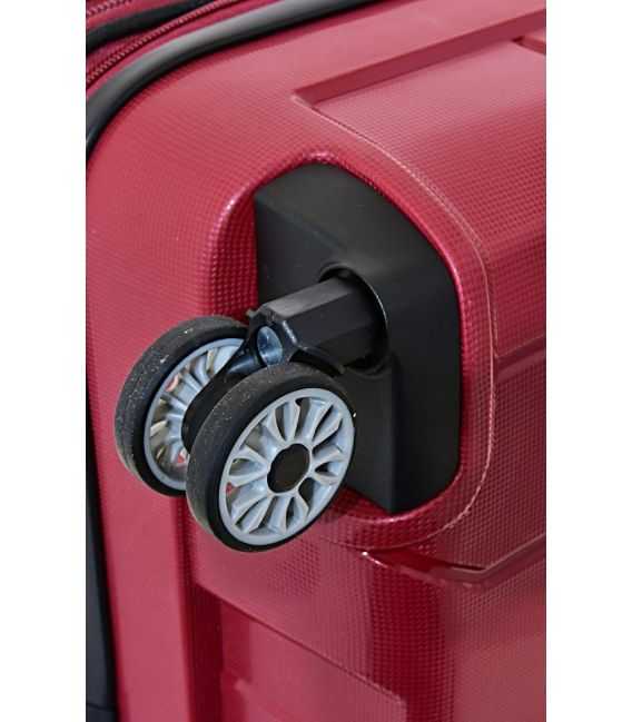 Тем не менее, они предлагают расширяемую молнию на 4 см (в среднем и большом размере), что позволяет им увеличивать объем (дополнительно 11 литров при необходимости). Их легко транспортировать благодаря регулируемой телескопической ручке и 4 двойным разнонаправленным колесам. Также возможно перемещать его вручную, например, по лестнице, одной из его ручек (сбоку или сверху).