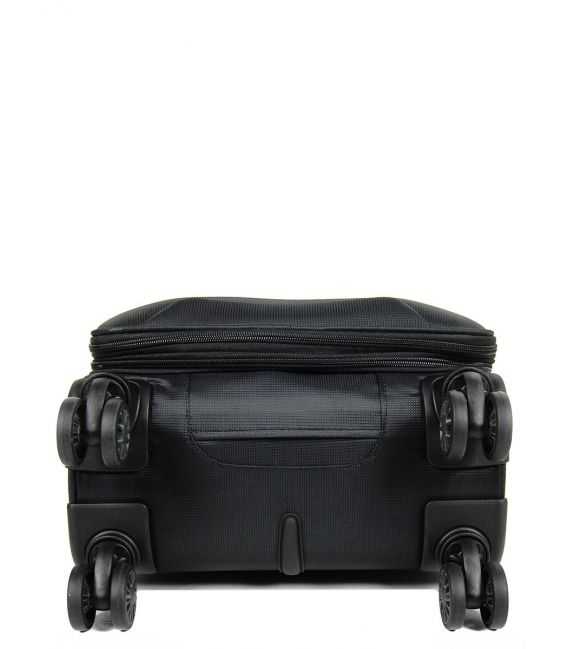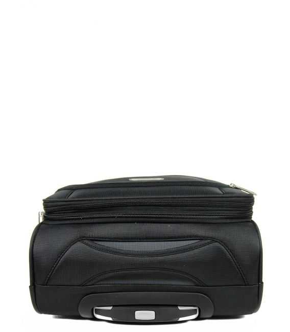 Данный чемодан изготовлен из специально разработанных легких компонентов, благодаря которым уменьшается вес чемодана, что является решением проблемы ограничения веса багажа во время авиаперелетов. Все основные элементы чемодана изготовлены из легких материалов и прочной ткани. Эта модель отличается высокой маневренностью и легкостью в управлении, благодаря четырехколесной системе (четыре колеса из прочного и бесшумного материала, вращающиеся на 360 градусов). В качестве ткани выбрали нейлон, имеющий высокую плотность (800D) и обладающий водоотталкивающими свойствами. Кроме того, этот материал легко очищается от грязи и не подвергается механической деформации. Есть расширение, которое позволит увеличить объем чемодана когда это необходимо. Каркас этого чемодана состоит из гибких полипропиленовых пластин и уплотненного дна, за счет чего, не только прекрасно держит свою форму, но и позволяют сохранять в целости все предметы находящиеся в середине. Одежда может быть аккуратно закреплена на фиксирующих ремнях. Также в середине чемодана размещен большой боковой карман-сетка, извне, для небольших вещей расположен карман в который удобно складывать все, что необходимо в дороге.