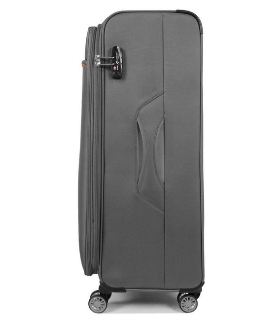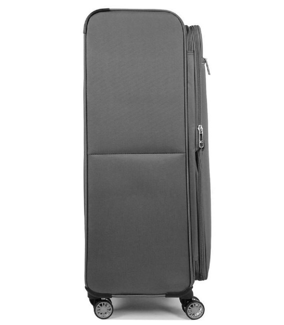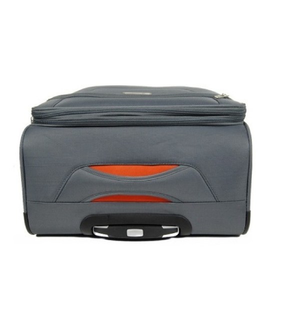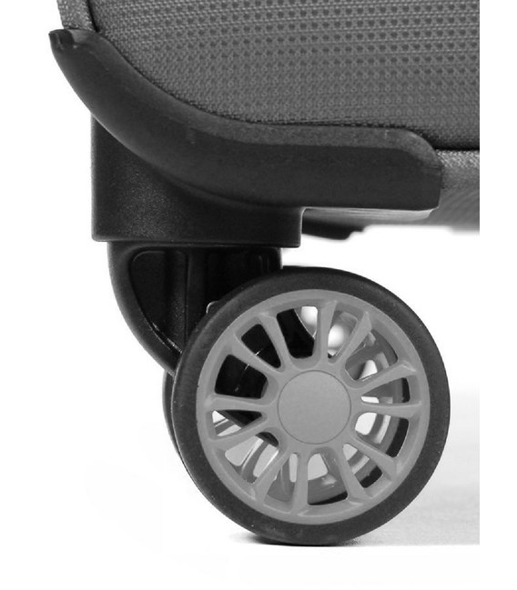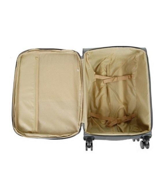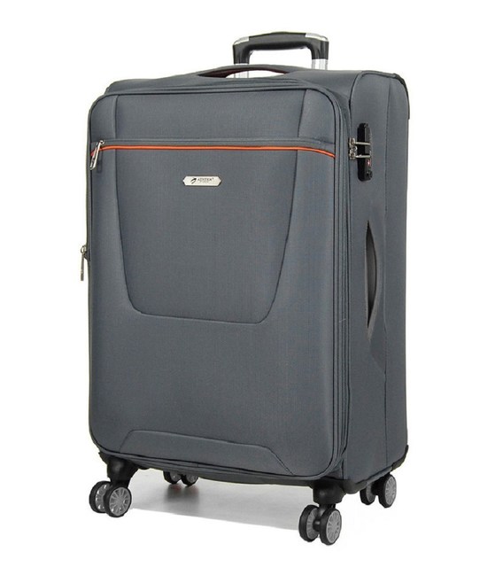 Данный чемодан изготовлен из специально разработанных легких компонентов, благодаря которым уменьшается вес чемодана, что является решением проблемы ограничения веса багажа во время авиаперелетов. Все основные элементы чемодана изготовлены из легких материалов и прочной ткани. Эта модель отличается высокой маневренностью и легкостью в управлении, благодаря четырехколесной системе (четыре колеса из прочного и бесшумного материала, вращающиеся на 360 градусов). В качестве ткани выбрали нейлон, имеющий высокую плотность (800D) и обладающий водоотталкивающими свойствами. Кроме того, этот материал легко очищается от грязи и не подвергается механической деформации. Есть расширение, которое позволит увеличить объем чемодана когда это необходимо. Каркас этого чемодана состоит из гибких полипропиленовых пластин и уплотненного дна, за счет чего, не только прекрасно держит свою форму, но и позволяют сохранять в целости все предметы находящиеся в середине. Одежда может быть аккуратно закреплена на фиксирующих ремнях. Также в середине чемодана размещен большой боковой карман-сетка, извне, для небольших вещей расположен карман в который удобно складывать все, что необходимо в дороге.