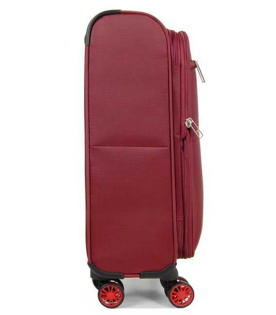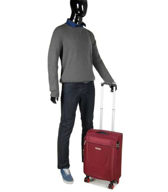 Данный чемодан изготовлен из специально разработанных легких компонентов, благодаря которым уменьшается вес чемодана, что является решением проблемы ограничения веса багажа во время авиаперелетов. Все основные элементы чемодана изготовлены из легких материалов и прочной ткани. Эта модель отличается высокой маневренностью и легкостью в управлении, благодаря четырехколесной системе (четыре колеса из прочного и бесшумного материала, вращающиеся на 360 градусов). В качестве ткани выбрали нейлон, имеющий высокую плотность (800D) и обладающий водоотталкивающими свойствами. Кроме того, этот материал легко очищается от грязи и не подвергается механической деформации. Есть расширение, которое позволит увеличить объем чемодана когда это необходимо. Каркас этого чемодана состоит из гибких полипропиленовых пластин и уплотненного дна, за счет чего, не только прекрасно держит свою форму, но и позволяют сохранять в целости все предметы находящиеся в середине. Одежда может быть аккуратно закреплена на фиксирующих ремнях. Также в середине чемодана размещен большой боковой карман-сетка, извне, для небольших вещей расположен карман в который удобно складывать все, что необходимо в дороге.