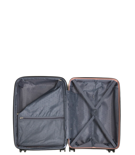 Два отделения на подкладке чемоданов Worldline Kos позволяют оптимально организовать вещи. Например, левое отделение выделено панелью-перегородкой для хранения громоздких предметов. Мы думаем о косметичке, паре обуви, пляжном или горном снаряжении и т. д. Правое отделение с эластичными ремнями-бабочками идеально подходит для хранения одежды. Наличие сетчатого кармана и меньшего кармана на молнии подходят для хранения мелких вещей и модных аксессуаров (солнцезащитные очки, маска для глаз, зарядное устройство для телефона и т. д.).