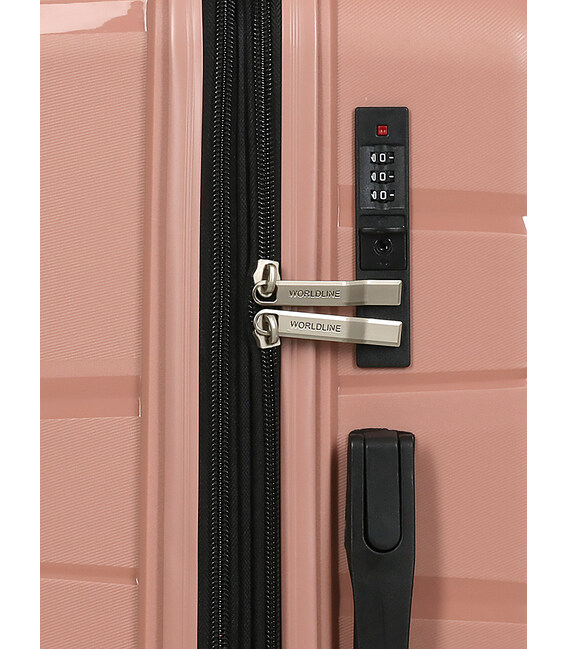 Путешествовать с расширяемыми чемоданами Worldline Kos значительно легче благодаря четырем двойным вращающимся на 360° колесам и регулируемой ручкой. Все они имеют высокую ручку, позволяющую без особых усилий поднять их на несколько ступенек. На двух чемоданах вторая боковая ручка обеспечивает дополнительный захват, так как они снабжены защитными усилениями, расположенными сбоку. Они застегиваются на молнию, а для защиты содержимого имеется утопленный кодовый замок на корпусе.
