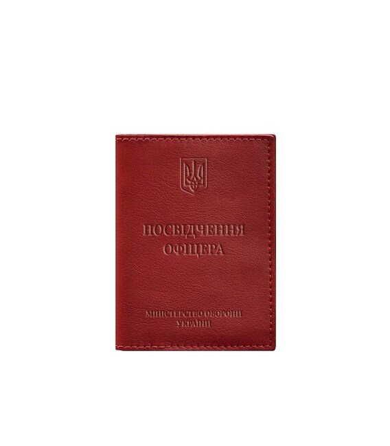 Кожаная обложка на удостоверение офицера от бренда БланкНот специально разработана для бережного хранения вашего документа. Сшита из высококачественной натуральной кожи краст. Кожа краст достаточно крепкая и долговечная.Тиснение на лицевой стороне обложки полностью дублирует оригинальный бланк документа. Вверху расположен герб Украины, посередине находится надпись «Посвідчення офіцера»К заказу доступны два варианта обложки:С двумя прозрачными карманами (ПВХ). С двумя кожаными карманами.Этот аксессуар обеспечит сохранность вашего документа и пригодится всем военнослужащим.Почему стоит купить Красную кожаную обложку на удостоверение офицера (BN-OP-9-red) от BlankNote?Качественная натуральная кожа Четкое и хорошее тиснение Ручная работы Гарантия 3 годаНаши мастера могут изготовить обложку в любом другом цвете. Также изделие можно персонализировать.Обратите внимание на наши изделия с украинской символикой. Рекомендуем обложки для паспорта с гербом Украины.Гарантия на обложку для паспорта - 3 года с момента покупки.Фурнитура и комплектация может быть изменена производителем