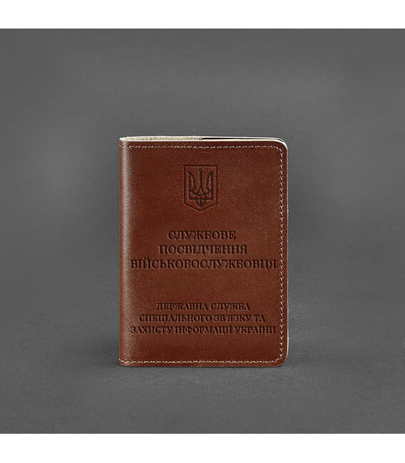 Кожаная обложка для служебного удостоверения военнослужащего Госспецсвязи светло-коричневая