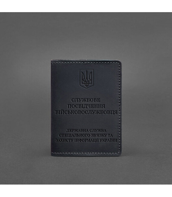 Кожаная обложка для служебного удостоверения военнослужащего Госспецсвязи темно-синяя Crazy Horse