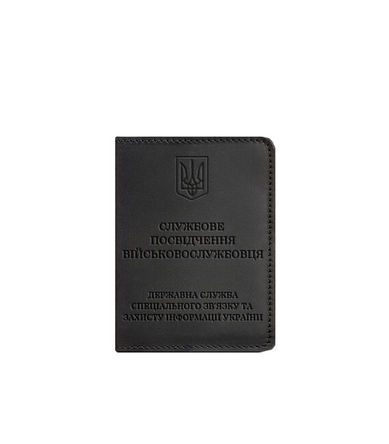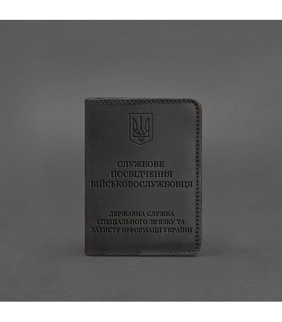 Кожаная обложка для служебного удостоверения военнослужащего Госспецсвязи черная Crazy Horse