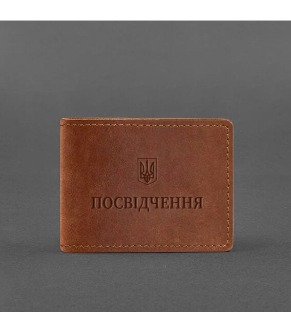 Кожаная обложка на удостоверение от бренда БланкНот специально разработана для бережного хранения вашего документа. Сшита из высококачественной натуральной кожи crazy horse, с винтажной матовой поверхностью. Кожа crazy horse обладает винтажным эффектом, она достаточно крепкая и долговечная.Тиснение на лицевой стороне обложки выполнено горячим методом, который формирует четкий оттиск.Внутри два прозрачных кармана (ПВХ), которые позволяют демонстрировать документ не доставая его из обложки.Этот аксессуар обеспечит сохранность вашего документа и пригодится всем военнослужащим.Почему стоит купить Коричневую кожаную обложку на удостоверение (BN-IDC-3-k-kr) от BlankNote?Качественная натуральная кожа Четкое и хорошее тиснение Ручная работы Гарантия 3 годаНаши мастера могут изготовить обложку в любом другом цвете. Также изделие можно персонализировать.Обратите внимание на наши изделия с украинской символикой. Рекомендуем обложки для паспорта с гербом Украины.Гарантия на обложку - 3 года с момента покупки.ВНИМАНИЕ! Выделка данной кожи предполагает естественное появление на ней царапин и потертостей в ходе использования! От этого изделие становится более индивидуальным и приятным, это оценят настоящие поклонники винтажного стиля:) А так же первое время кожа может краситься при сильном трении об другие предметы - это особенность её выделки, постепенно этот эффект уменьшается, кожа полируется и приобретает чуть глянцевый эффект.Фурнитура и комплектация может быть изменена производителем