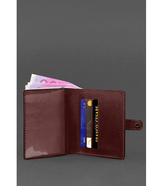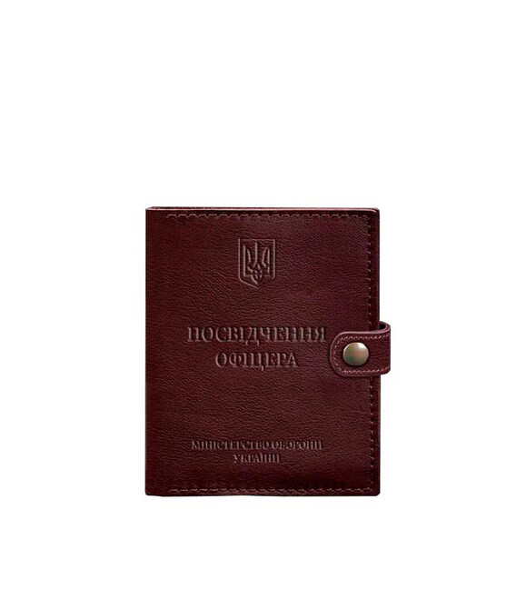 Кожаная обложка-портмоне на удостоверение офицера от бренда БланкНот специально разработана для бережного хранения вашего документа. Сшита из высококачественной натуральной кожи краст бордового цвета. Кожа краст достаточно крепкая и долговечная.Тиснение на лицевой стороне обложки полностью дублирует оригинальный бланк документа. Вверху расположен герб Украины, посередине находится надпись «Посвідчення офіцера» и в нижней части имеется тиснение «Міністерство оборони України»Внутри имеется 1 отделение для купюр, 3 слота для пластиковых карт, прозрачный карман и отделение для документа. Закрывается портмоне-обложка хлястиком с кнопкой. Почему стоит купить Бордовую кожаную обложку-портмоне на удостоверение офицера (BN-OP-11-vin) от BlankNote?Качественная натуральная кожа Четкое и хорошее тиснение Ручная работы Гарантия 3 годаНаши мастера могут изготовить обложку-портмоне в любом другом цвете. Также изделие можно персонализировать.Обратите внимание на наши изделия с украинской символикой. Рекомендуем обложки для паспорта с гербом Украины.Гарантия на обложку-портмоне - 3 года с момента покупки.Фурнитура и комплектация может быть изменена производителем