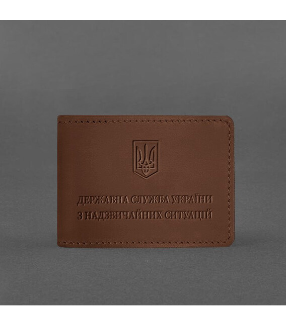 Описание Кожаная обложка на удостоверение Государственной службы Украины по чрезвычайным ситуациям (ДСНС) светло-коричневая Crazy Horse