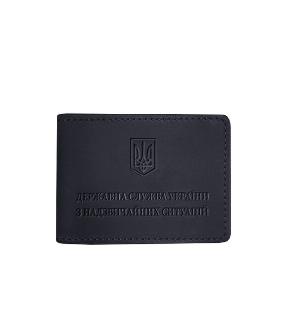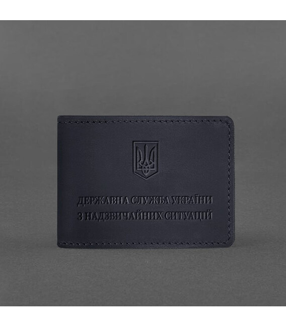 Описание Кожаная обложка на удостоверение Государственной службы Украины по чрезвычайным ситуациям (ДСНС) темно-синяя Crazy Horse