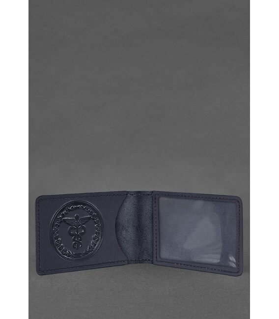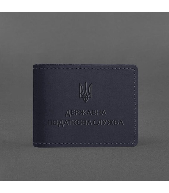 Кожаная обложка на удостоверение Государственной налоговой службы темно-синяя Crazy Horse