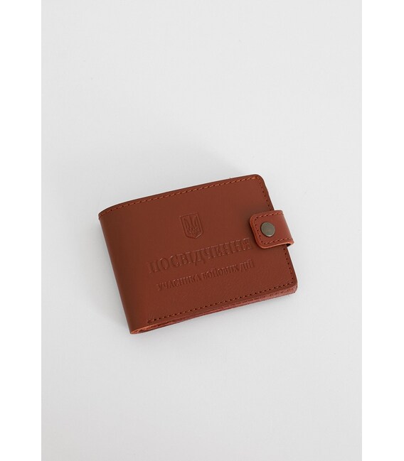 Кожаная обложка-портмоне для удостоверения участника боевых действий (УБД) Светло-коричневая