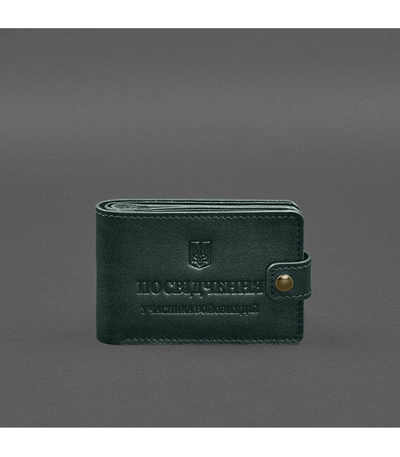 Кожаная обложка-портмоне для удостоверения участника боевых действий (УБД) Зеленая