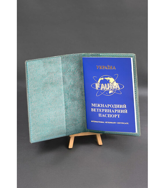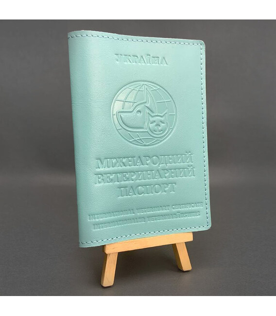 Кожаная обложка на ветеринарный паспорт бирюзовая