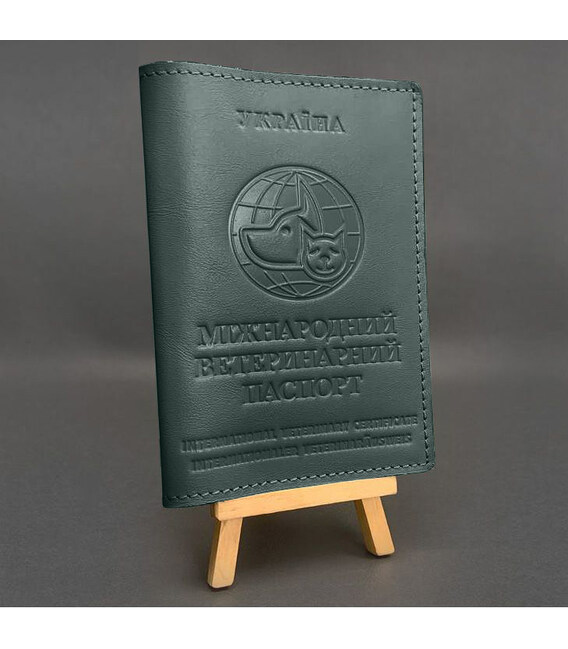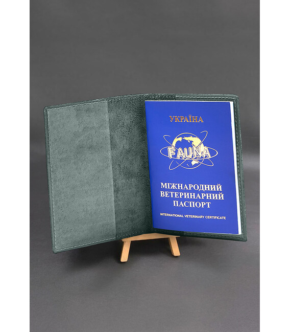 Кожаная обложка на ветеринарный паспорт Зеленая