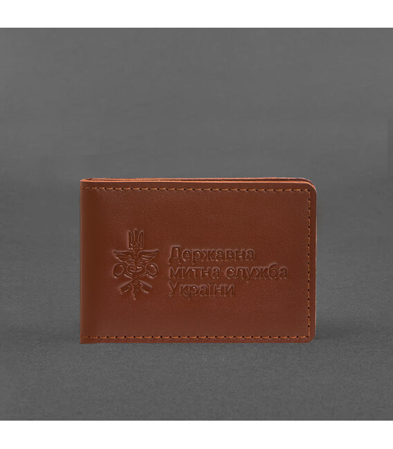 Кожаная обложка для удостоверения (карточки) государственной таможенной службы (ДМС) Светло-коричневая