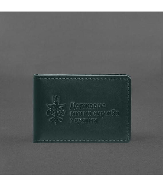 Кожаная обложка для удостоверения (карточки) государственной таможенной службы (ДМС) Зеленая