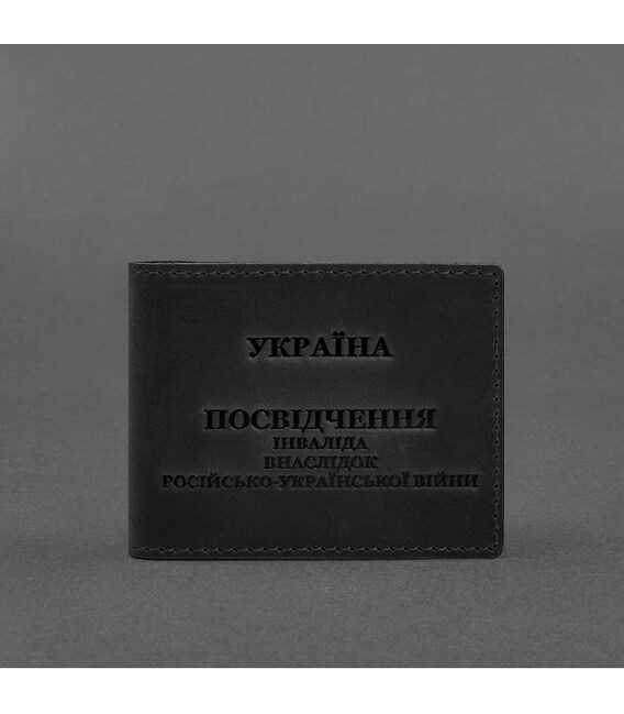Кожаная обложка для удостоверения инвалида в результате российско-украинской войны черный Crazy Horse